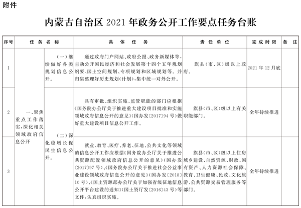 附件:内蒙古自治区2021年政务公开工作要点任务台账